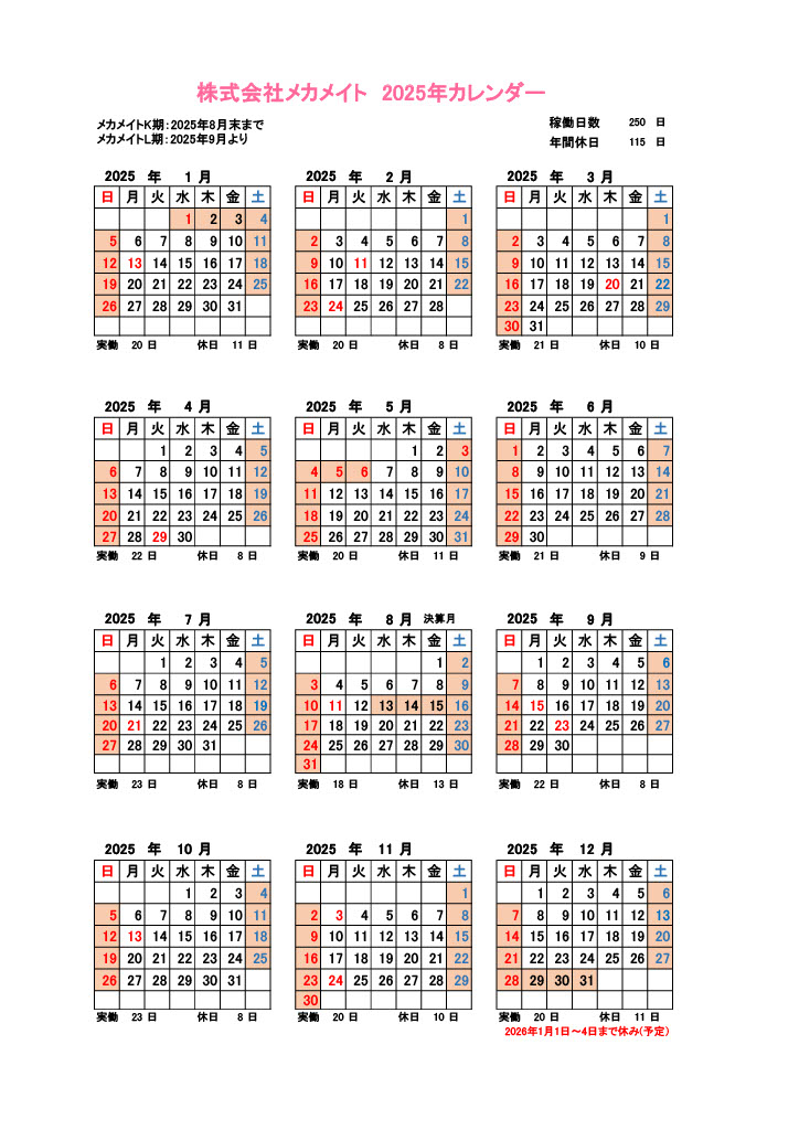会社カレンダー