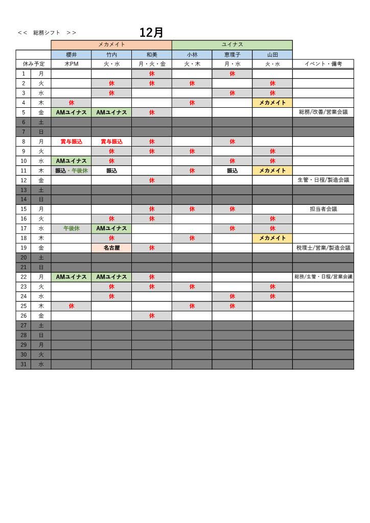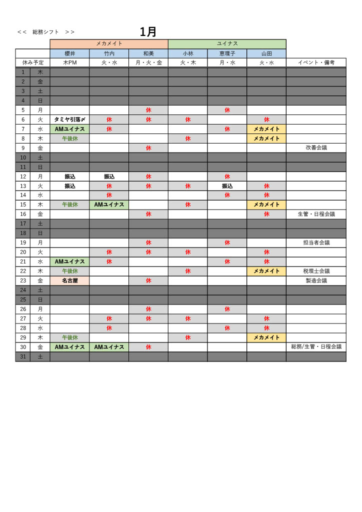 総務部シフト